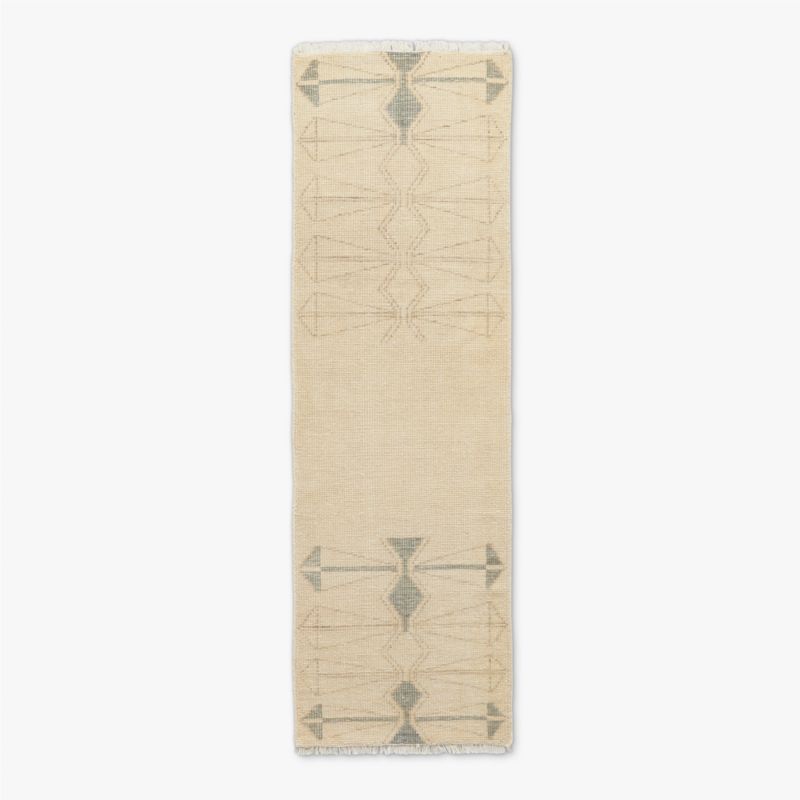 Hand-knotted New Zealand wool runner rug pays homage to the distinctive organic motifs of California midcentury modernism. Recreated from an original 1960s design by Los Angeles artist Evelyn Ackerman, the rug embodies the modernist principle of combining fine art with traditional craftsmanship. The runner is artfully distressed for depth and dimension that varies from rug to rug. CB2 exclusive.