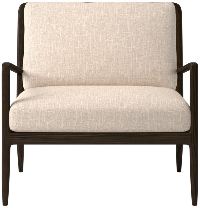 Hand-assembled accent chair by Mermelada Estudio balances a slim, curved wood frame with a fabric cushion. Red oak frame, certified sustainable by the Forest Stewardship Council®, sports steam-bent arms shaped at a tight radius for an impossibly thin form. The chair's streamlined silhouette pairs perfectly with the warm, organic feel of the materials to create a seating that's equally comfortable and sophisticated. CB2 exclusive.