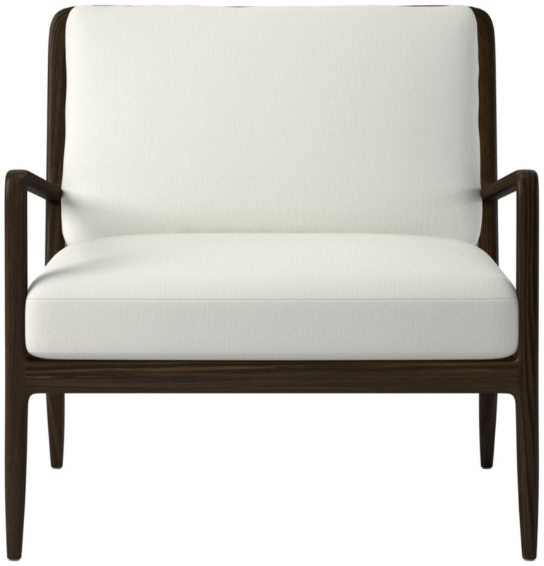 Mermelada Estudio balances a slim, curved wood frame with a fabric cushion. Red oak frame, certified sustainable by the Forest Stewardship Council®, sports steam-bent arms shaped at a tight radius for an impossibly thin form. The chair's streamlined silhouette pairs perfectly with the warm, organic feel of the materials to create a seating that's equally comfortable and sophisticated. CB2 exclusive.