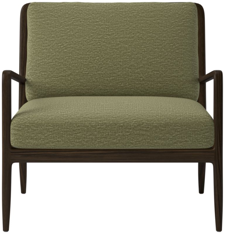 Hand-assembled accent chair by Mermelada Estudio balances a slim, curved wood frame with a fabric cushion. Red oak frame, certified sustainable by the Forest Stewardship Council®, sports steam-bent arms shaped at a tight radius for an impossibly thin form. The chair's streamlined silhouette pairs perfectly with the warm, organic feel of the materials to create a seating that's equally comfortable and sophisticated. CB2 exclusive.