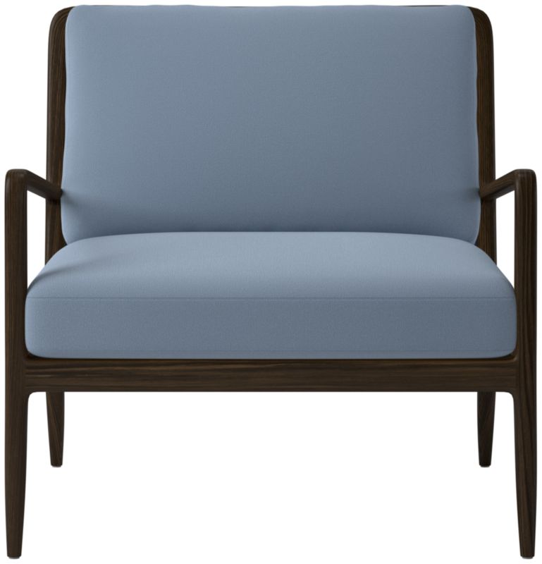 Hand-assembled accent chair by Mermelada Estudio balances a slim, curved wood frame with a fabric cushion. Red oak frame, certified sustainable by the Forest Stewardship Council®, sports steam-bent arms shaped at a tight radius for an impossibly thin form. The chair's streamlined silhouette pairs perfectly with the warm, organic feel of the materials to create a seating that's equally comfortable and sophisticated. CB2 exclusive.