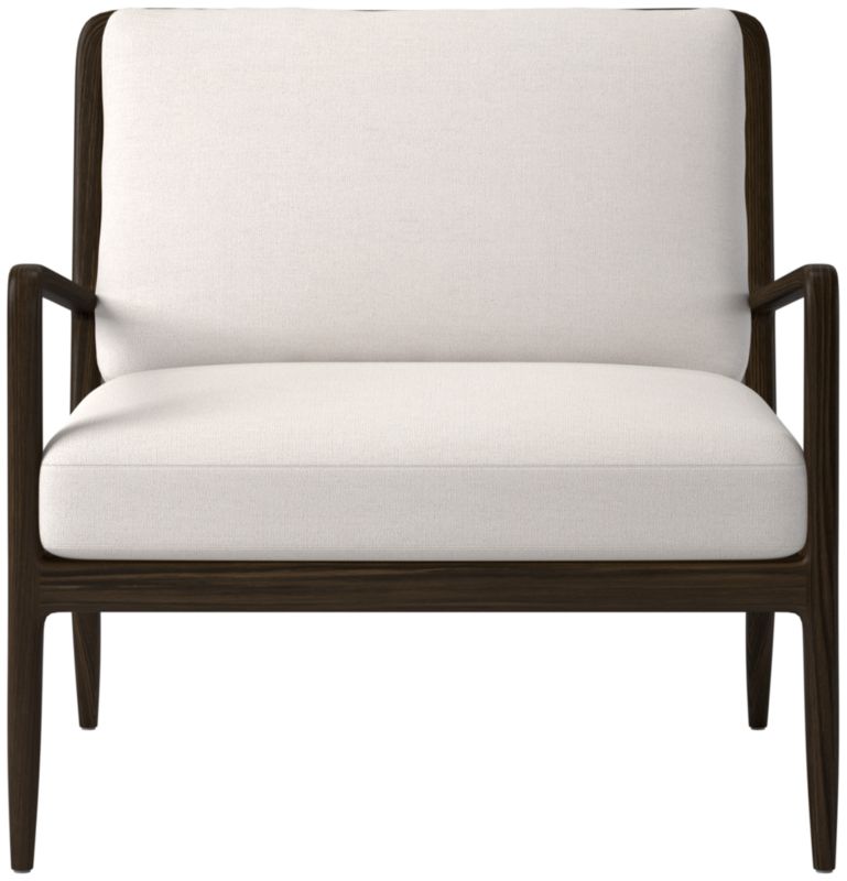Mermelada Estudio balances a slim, curved wood frame with a fabric cushion. Red oak frame, certified sustainable by the Forest Stewardship Council®, sports steam-bent arms shaped at a tight radius for an impossibly thin form. The chair's streamlined silhouette pairs perfectly with the warm, organic feel of the materials to create a seating that's equally comfortable and sophisticated. CB2 exclusive.