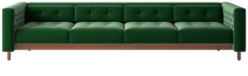 This sleek, low sofa was originally created by iconic Italian designer Gianfranco Frattini for the fashionable Restaurant St. Andrews in the heart of old Milan. Now, a modern classic returns with the same spirit of the original design, reimagined with room for four. Period-authentic details include hand-sewn button tufts on the interior sides and cushions, along with the inset walnut legs that are characteristic of the designer's signature style. CB2 exclusive.