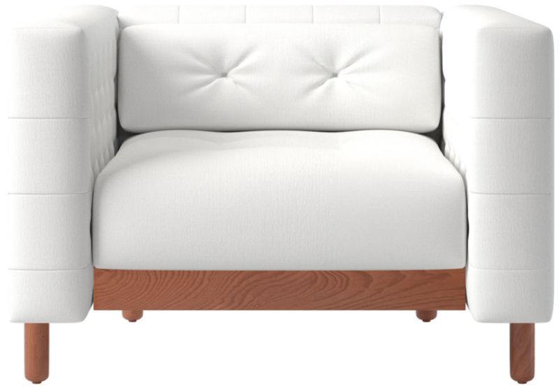 Sleek, low-profile accent chair was originally created by iconic Italian designer Gianfranco Frattini for the fashionable Restaurant St. Andrews in the heart of old Milan. Now, a modern classic returns with the same spirit of the original design. Period-authentic details include hand-sewn button tufts on the interior sides and cushions, along with the inset walnut legs that are characteristic of the designer's signature style. CB2 exclusive.
