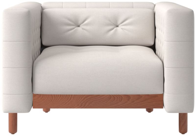 Sleek, low-profile accent chair was originally created by iconic Italian designer Gianfranco Frattini for the fashionable Restaurant St. Andrews in the heart of old Milan. Now, a modern classic returns with the same spirit of the original design. Period-authentic details include hand-sewn button tufts on the interior sides and cushions, along with the inset walnut legs that are characteristic of the designer's signature style. CB2 exclusive.