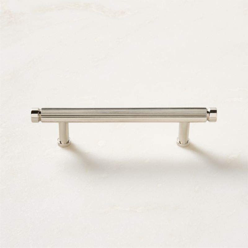 Elevated brass cabinet handle by fashion-turned-home-designer Brett Beldock features a fine ribbed detail that can pull a room together. CB2 exclusive.