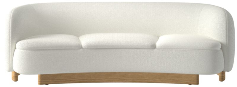 Sofa by Lawson-Fenning has a graceful arching silhouette, mirrored by bent-wood legs that follow its curve. Semi-detached cushions are comfortable and plush, creating an inviting spot to unwind for hours. Fabric feels pleasing to the touch. CB2 exclusive.