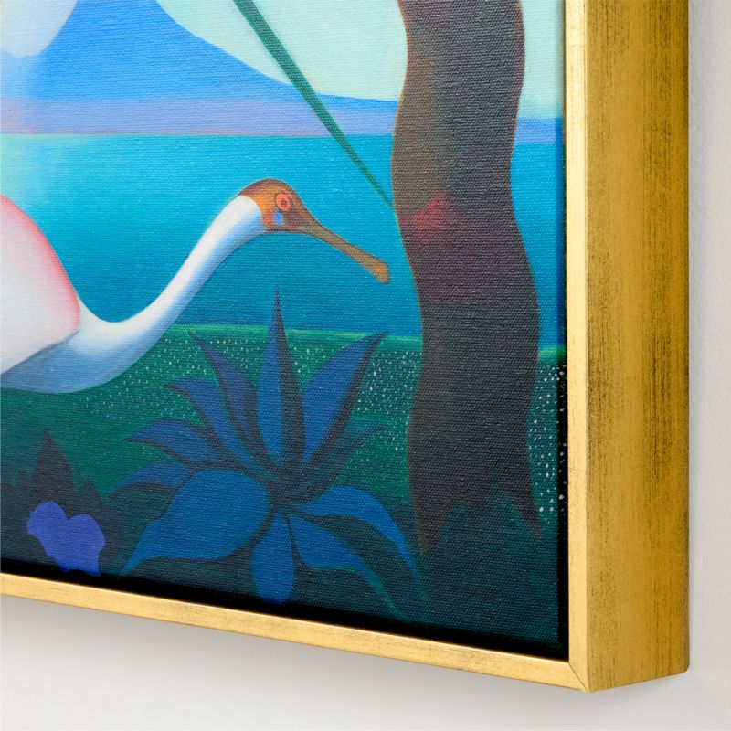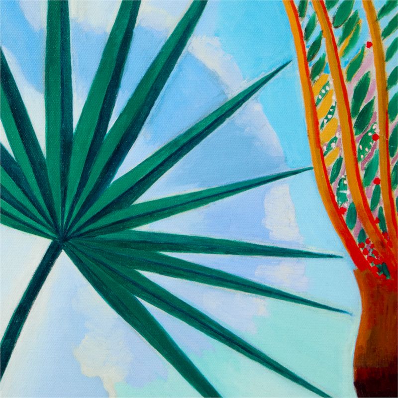 Artist Joseph Stella believed every day should "begin and end [with] the painting of a flower." The flora and fauna he sketched at the Bronx Botanical Garden are recreated in this scene of the Bay of Naples. Featuring a palmetto leaf radiating across the canvas with Mount Vesuvius in the background, "Neapolitan Song" captures images of southern Italy, bridging the distance between Stella's old home and his adopted country of the United States. CB2 exclusive.