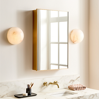 Reflect your style with modern wall mirrors that balance form and function. A round mirror framed in brass, a sleek black leaner, or a sculptural piece above the mantel—each one transforms light and perspective into design. For a minimalist statement, choose frameless; for warmth, try natural wood or bone inlay. Layer mirrors to amplify depth, or anchor the fireplace with a mantel mirror that expands the room's visual rhythm. Our wall mirrors don't just reflect what's there—they elevate it. Every finish, from matte black to polished onyx, is a study in refinement. Pair with coordinated details—matching hardware, sculptural candleholders, or contemporary wall art—for cohesion that feels intentional yet effortless. Enduring in quality and timeless in appeal, CB2 wall mirrors are designed to catch the light—and keep it.