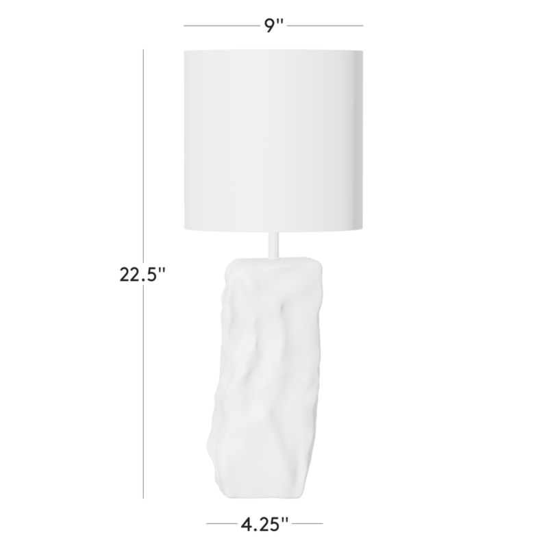 Organic modern table lamp adds super natural style to your space with stunning mix of materials. Sleek nickel pole and round cotton shade exude sophisticated simplicity, but the rough, raw natural marble base really steals the scene here. CB2 exclusive.