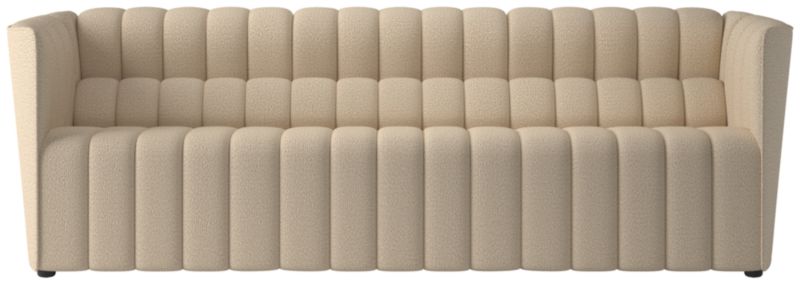 Out of production for decades, the classic Steen Østergaard fabric sofa from 1980 has been reissued exclusively for CB2. With neat topstitching details and a welt trim, the look leans modern, softened by plush cushions and tailored channel tufting. CB2 exclusive.
