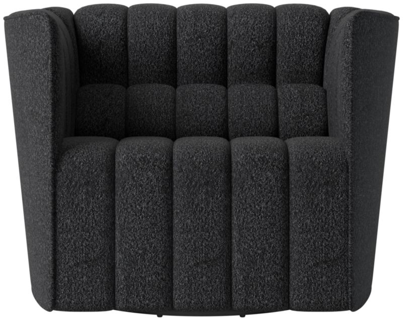 Out of production for decades, the classic Steen Østergaard swivel chair from 1980 has been reissued exclusively for CB2. The look leans modern with clean lines and a neat welt trim softened by plush channel tufting. CB2 exclusive.