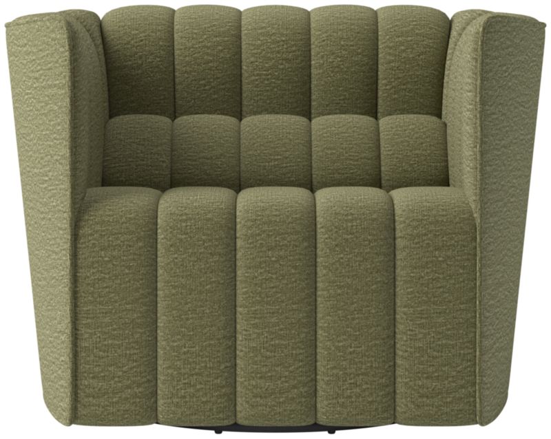 Out of production for decades, the classic Steen Østergaard swivel chair from 1980 has been reissued exclusively for CB2. The look leans modern with clean lines and a neat welt trim softened by plush channel tufting. CB2 exclusive.