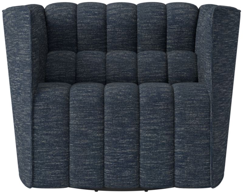 Out of production for decades, the classic Steen Østergaard swivel chair from 1980 has been reissued exclusively for CB2. The look leans modern with clean lines and a neat welt trim softened by plush channel tufting. CB2 exclusive.