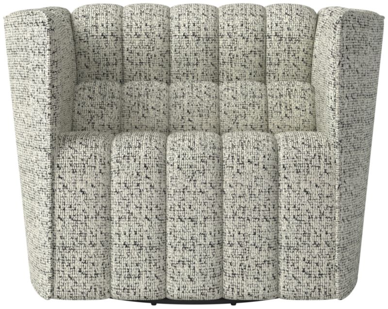 Out of production for decades, the classic Steen Østergaard swivel chair from 1980 has been reissued exclusively for CB2. The look leans modern with clean lines and a neat welt trim softened by plush channel tufting. CB2 exclusive.