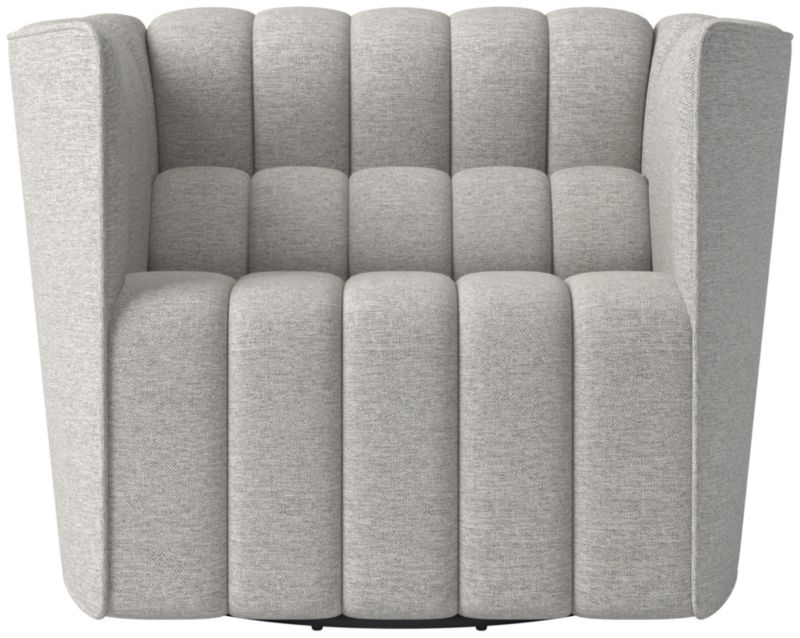 Out of production for decades, the classic Steen Østergaard swivel chair from 1980 has been reissued exclusively for CB2. The look leans modern with clean lines and a neat welt trim softened by plush channel tufting. CB2 exclusive.