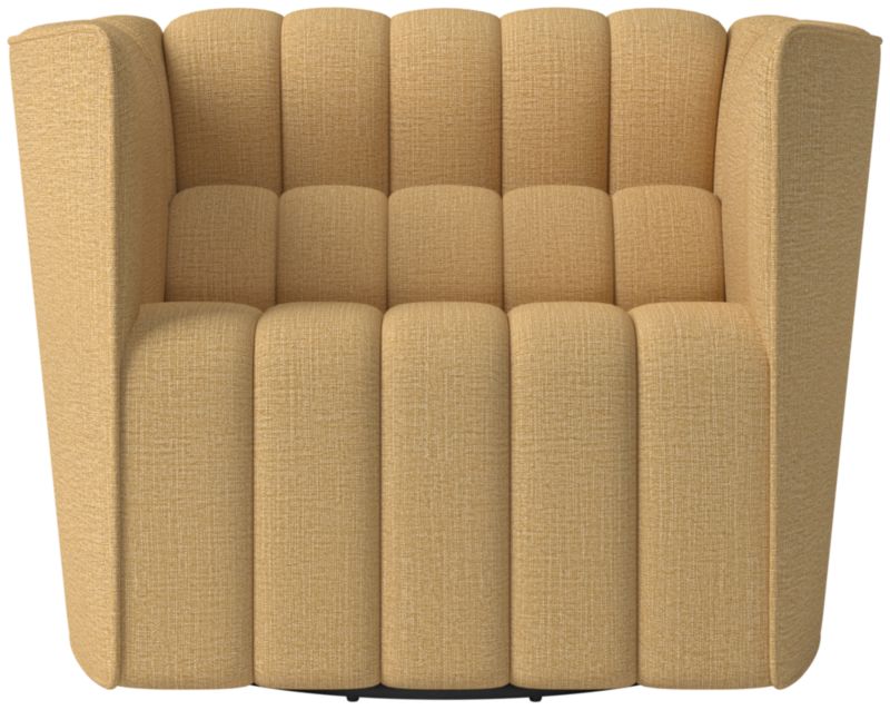 Out of production for decades, the classic Steen Østergaard swivel chair from 1980 has been reissued exclusively for CB2. The look leans modern with clean lines and a neat welt trim softened by plush channel tufting. CB2 exclusive.