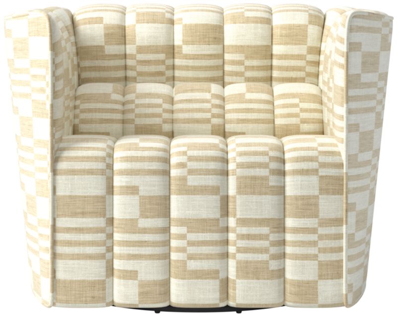 Out of production for decades, the classic Steen Østergaard swivel chair from 1980 has been reissued exclusively for CB2. The look leans modern with clean lines and a neat welt trim softened by plush channel tufting. CB2 exclusive.