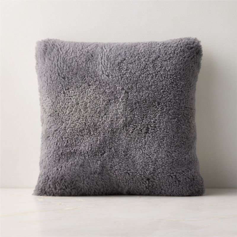 Crafted from 100% sheepskin, slate blue shearling pillow offers a dense, plush texture that imparts warmth and dimension. Each piece is one of a kind, with subtle variations in color that highlight the natural beauty of real shearling. A durable cotton duck back provides structure, while a hidden zipper closure ensures a seamless finish. CB2 pillows include a pillow insert in your choice of feather down or down alternative. CB2 exclusive.