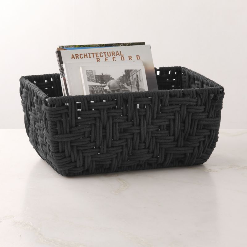Rowen Handwoven Rectangle Black Cotton Storage Basket Small