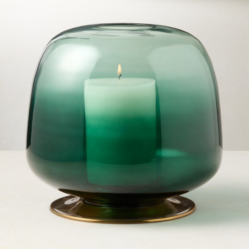 Roxana Ombre Forest Green Glass Hurricane Candle Holder