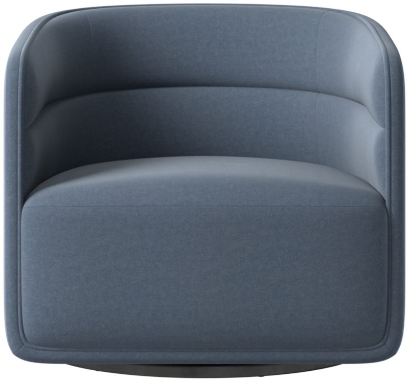 Smoothly upholstered swivel chair sports the hallmarks of a classic Mermelada Estudio design. Modern silhouette reveals design details such as horizontal tufted channels and a crisp welt around the frame for a tailored look. Soft upholstery is made to stay looking fresh while withstanding the realities of everyday living. CB2 exclusive.