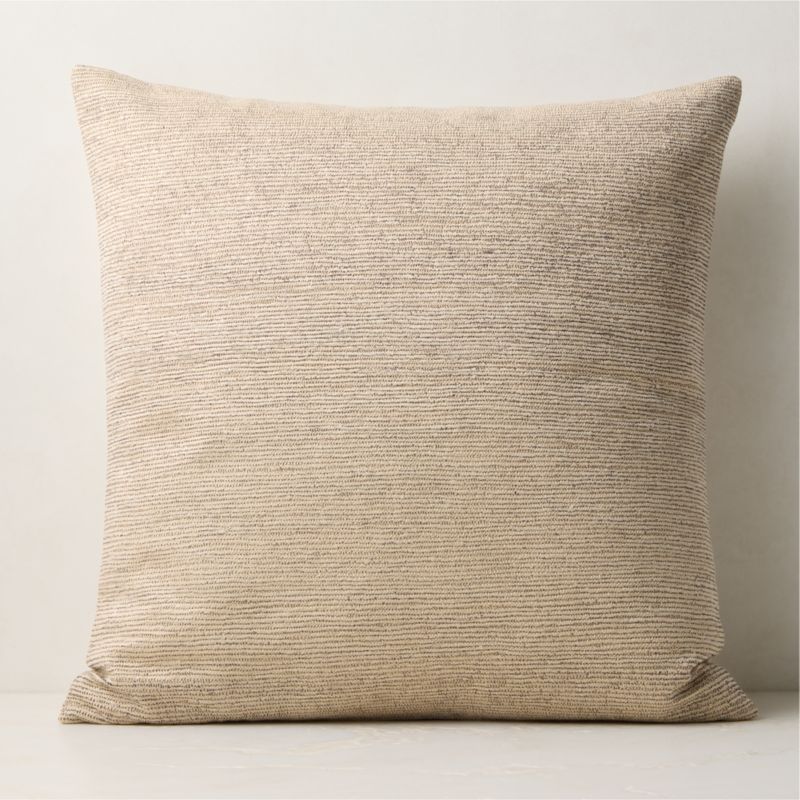 Cotton throw pillow features an intricately embroidered motif set against a subtly woven ground. Because each piece is sewn and embroidered by hand, slight variations in thread and pattern lend every pillow its own distinctive character. Reverses to a solid back. CB2 pillows include a pillow insert in your choice of feather-down or down alternative. CB2 exclusive.