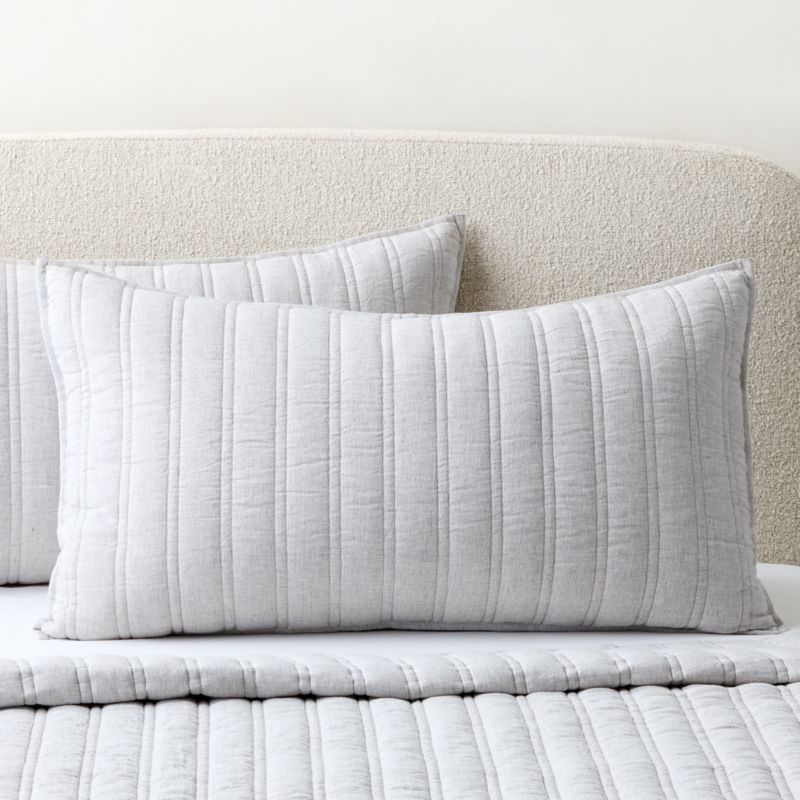 Crafted from finely woven European linen, pillow shams designed by Laundry Studio deliver an elevated balance of softness and performance. Soft, heathered European linen offers exceptional breathability, making it ideal for comfortable sleep in both warm and cool climates. Thoughtful details like self-piping, envelope closure and an elegant channel stitch make it a timeless yet inspired choice for the bedroom. CB2 exclusive.