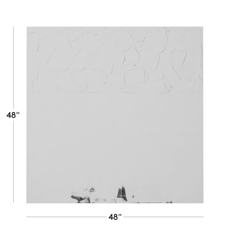 Snow blankets the Rocky Mountains under a layer of white in Kent Youngstrom's "Snowcap Hill." Building layers of texture with expressive brushwork, Youngstrom reimagines the rough and rocky walls of freshly powdered ski slopes in this abstract landscape. Painted by the artist in his studio near Park City, Utah, the expansive white field evokes the silence of snow. CB2 exclusive.