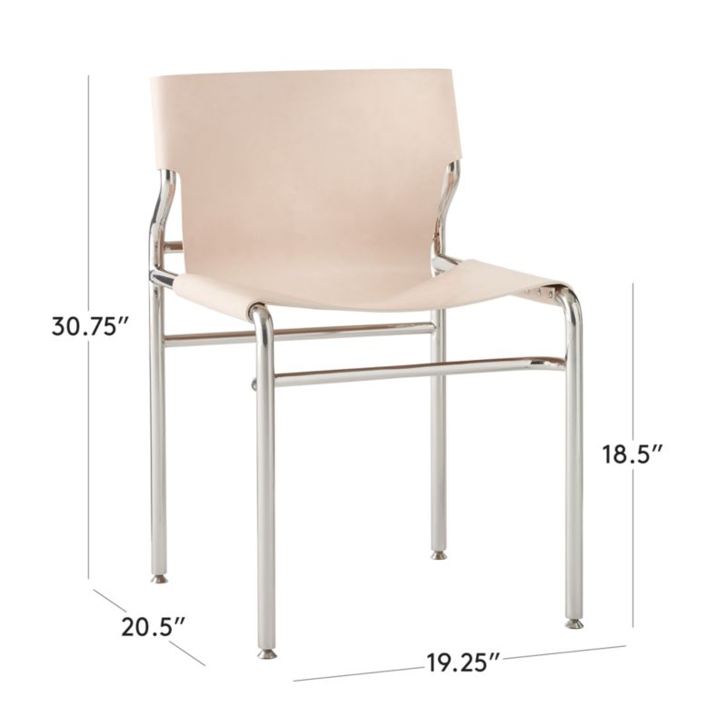 Surf Sling Untanned Leather Dining Chair Set of 430.75height19.25width20.5depthMeasurements are in inches.78.1height48.9width52.07depthMeasurements are in centimeters.