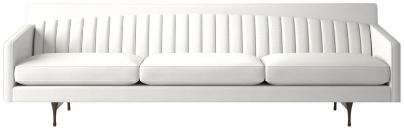 The iconic Symmetric 918 sofa designed by Paul McCobb in 1962 is characterized by clean lines, attention to detail and a sense of visual lightness that became a trademark of his work. Inspired by Shaker design, the sofa debuted with a channel-tufted back and slim walnut legs that made the piece appear weightless. Falling out of production after McCobb's death in 1969, the original design became highly sought after. From its sculptural curves to the angled arms, our reissue captures every coveted detail. CB2 exclusive.