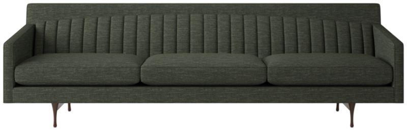 Paul McCobb in 1962 is characterized by clean lines, attention to detail and a sense of visual lightness that became a trademark of his work. Inspired by Shaker design, the sofa debuted with a channel-tufted back and slim walnut legs that made the piece appear weightless. Falling out of production after McCobb's death in 1969, the original design became highly sought after. From its sculptural curves to the angled arms, our reissue captures every coveted detail. CB2 exclusive.