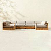 View CartTopia 7-Piece L-Shaped Teak Outdoor Sectional Sofa with White Sunbrella® Cushions
