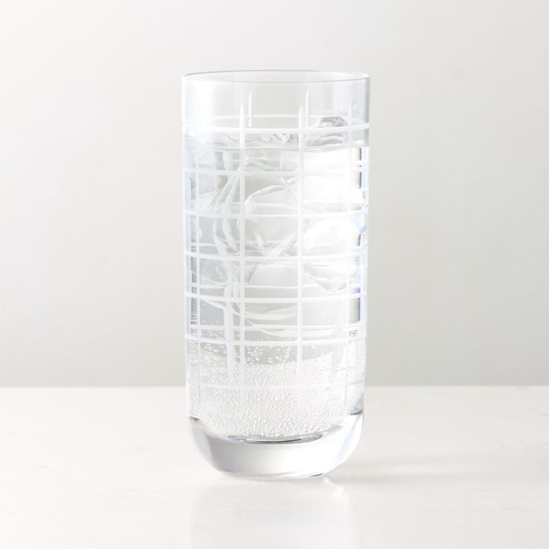 Sophisticated cooler glass is distinguished by a crisp etched grid pattern. The modern glass feels great in hand thanks to its hefty rounded sham. Crafted in southern Poland by Krosno, a world-renowned glassmaker that has been producing high-quality stemware for over 100 years. Complete the collection with our Violeta double old-fashioned glass. CB2 exclusive.