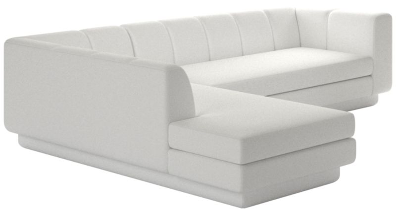Taking stylistic nods from 1970s Italian design and the designers' own laidback Southern California aesthetic, two-piece sofa by Lawson-Fenning has generous proportions for gathering and relaxing. A deep seat is complemented by a relaxed back with wide-set channel tufting. Each piece is assembled by hand to ensure a level of quality befitting the design. CB2 exclusive.