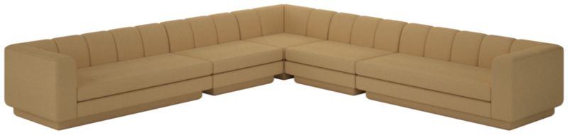 Taking stylistic nods from 1970s Italian design and the designers' own laid-back Southern California aesthetic, five-piece sectional sofa by Lawson-Fenning has generous proportions for gathering and relaxing. A deep seat is complemented by a relaxed back with wide-set channel. Each piece is assembled by hand to ensure a level of quality befitting the design. CB2 exclusive.
