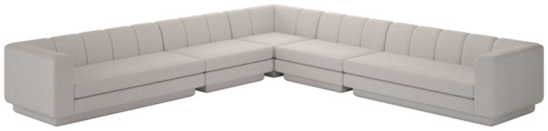 Taking stylistic nods from 1970s Italian design and the designers' own laid-back Southern California aesthetic, five-piece sectional sofa by Lawson-Fenning has generous proportions for gathering and relaxing. A deep seat is complemented by a relaxed back with wide-set channel. Each piece is assembled by hand to ensure a level of quality befitting the design. CB2 exclusive.