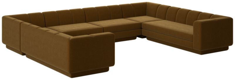 Taking stylistic nods from 1970s Italian design and the designers' own laid-back Southern California aesthetic, six-piece sectional sofa by Lawson-Fenninghas generous proportions for gathering and relaxing. A deep seat is complemented by a relaxed back with wide-set channel tufting. Each piece is assembled by hand to ensure a level of quality befitting the design. CB2 exclusive.