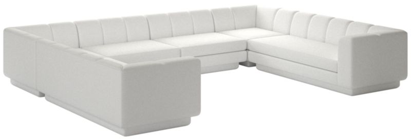 Taking stylistic nods from 1970s Italian design and the designers' own laid-back Southern California aesthetic, six-piece sectional sofa by Lawson-Fenninghas generous proportions for gathering and relaxing. A deep seat is complemented by a relaxed back with wide-set channel tufting. Each piece is assembled by hand to ensure a level of quality befitting the design. CB2 exclusive.