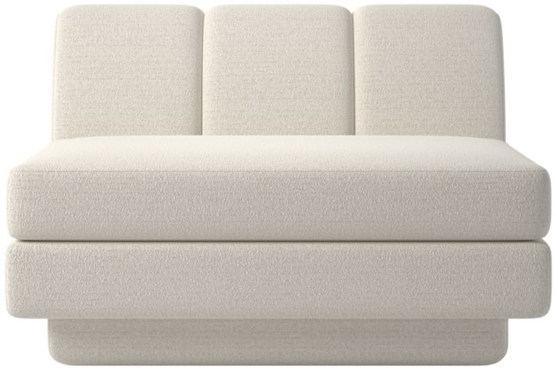 Taking stylistic nods from 1970s Italian design and the designers' own laid-back Southern California aesthetic, armless chair by Lawson-Fenning has generous proportions for gathering and relaxing. A deep seat is complemented by a relaxed back with wide-set channel tufting. Each piece is assembled by hand to ensure a level of quality befitting the design. Coordinates with other pieces from the Yarrow collection to create a sectional sofa. CB2 exclusive.