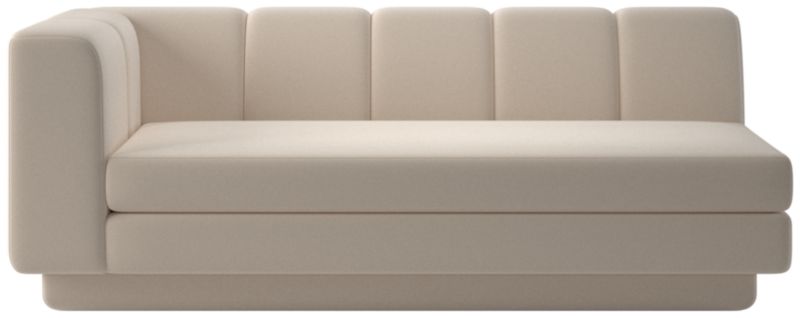 Taking stylistic nods from 1970s Italian design and the designers' own laid-back Southern California aesthetic, left-arm sofa by Lawson-Fenning has generous proportions for gathering and relaxing. A deep seat is complemented by a relaxed back with wide-set channel tufting. Each piece is assembled by hand to ensure a level of quality befitting the design. Coordinates with other pieces from the Yarrow collection to create a sectional sofa. CB2 exclusive.
