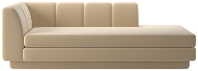 Taking stylistic nods from 1970s Italian design and the designers' own laid-back Southern California aesthetic, right-arm chaise by Lawson-Fenning has generous proportions for gathering and relaxing. A deep seat is complemented by a relaxed back with wide-set channel tufting. Each piece is assembled by hand to ensure a level of quality befitting the design. Coordinates with other pieces from the Yarrow collection to create a sectional sofa. CB2 exclusive.