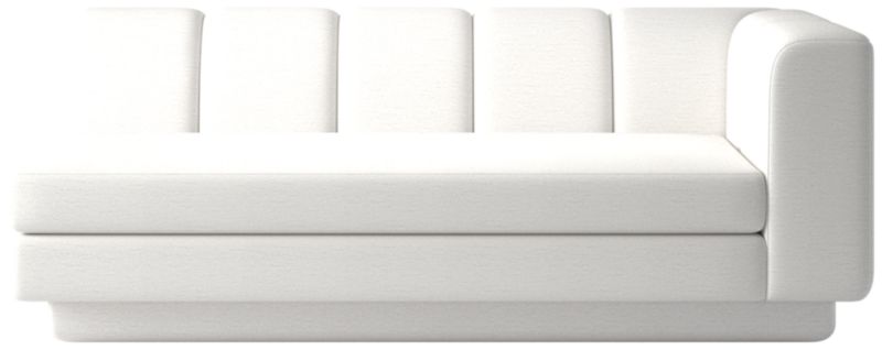 Taking stylistic nods from 1970s Italian design and the designers' own laid-back Southern California aesthetic, right-arm sofa by Lawson-Fenning has generous proportions for gathering and relaxing. A deep seat is complemented by a relaxed back with wide-set channel tufting. Each piece is assembled by hand to ensure a level of quality befitting the design. Coordinates with other pieces from the Yarrow collection to create a sectional sofa. CB2 exclusive.