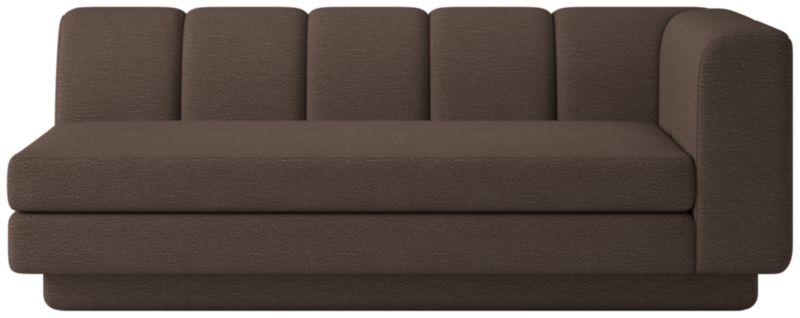 Taking stylistic nods from 1970s Italian design and the designers' own laid-back Southern California aesthetic, right-arm sofa by Lawson-Fenning has generous proportions for gathering and relaxing. A deep seat is complemented by a relaxed back with wide-set channel tufting. Each piece is assembled by hand to ensure a level of quality befitting the design. Coordinates with other pieces from the Yarrow collection to create a sectional sofa. CB2 exclusive.
