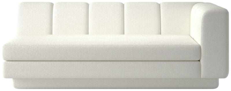 Taking stylistic nods from 1970s Italian design and the designers' own laid-back Southern California aesthetic, right-arm sofa by Lawson-Fenning has generous proportions for gathering and relaxing. A deep seat is complemented by a relaxed back with wide-set channel tufting. Each piece is assembled by hand to ensure a level of quality befitting the design. Coordinates with other pieces from the Yarrow collection to create a sectional sofa. CB2 exclusive.